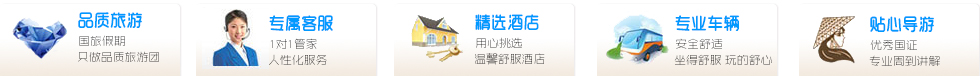 | 注:1、70歲以上老人、小孩、軍人、殘疾人、記者、導(dǎo)游等有相應(yīng)門票優(yōu)惠或免費(fèi),價(jià)格另外計(jì)算; 2、預(yù)定此條線路,請(qǐng)至電我社; 3、本行程部分景區(qū)景點(diǎn)及參觀場所內(nèi)設(shè)有購物商場,非本公司安排,亦非本公司能控制,不建議客人進(jìn)入購物場所購物;如自行進(jìn)入了購物場所購物屬于個(gè)人的自主行為,我公司不受理因客人自行購物帶來的維修、換退貨及投訴等事宜!有需購買者請(qǐng)慎重考慮并自行選擇,以防止上當(dāng)受騙,給您帶來不必要的損失和不快。為保證大多數(shù)游客不受不良僧侶及道長的惡意恐嚇,影響旅游的美好心情,本公司不安排寺廟道觀類景點(diǎn)參觀游覽,在寺廟道觀燒香、請(qǐng)佛等宗教活動(dòng),客人自愿參加,與旅行社無關(guān),請(qǐng)慎重選擇。 |